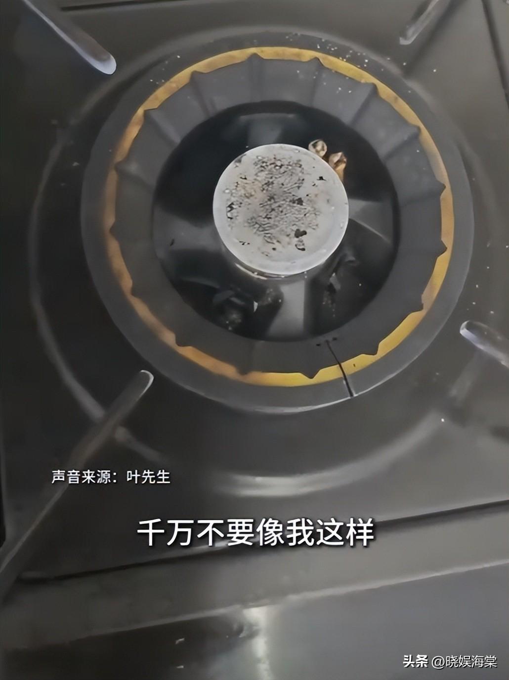 这下叶先生终于是意识到了,情况不对,赶忙撒腿往厨房里跑,结果不出所料,因为离开时没有关燃气灶,锅已经被烧糊掉渣了。